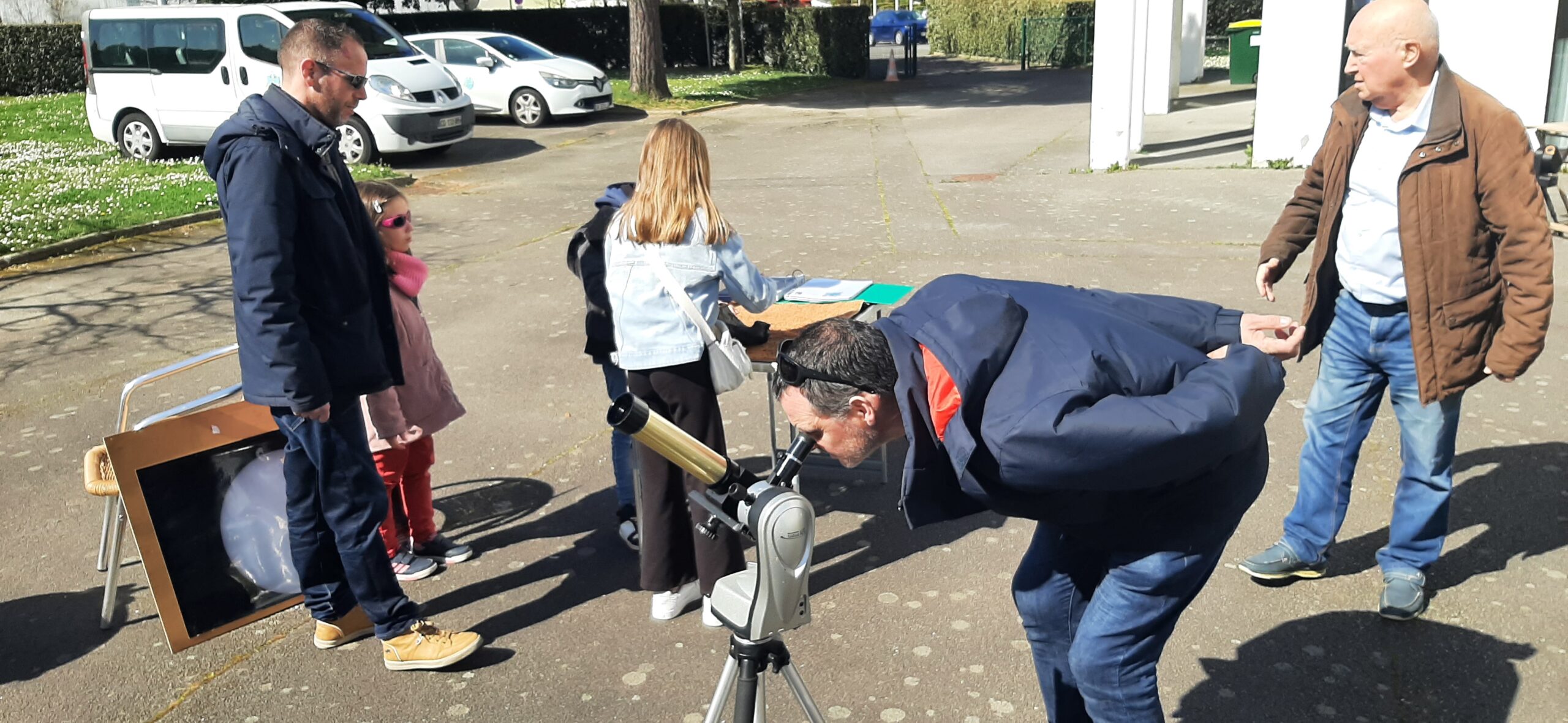 Le 29 mars 2025, une animation exceptionnelle a été organisée à la MJC de La Baule à l’occasion de l’éclipse partielle de soleil. Cette session d’observation a été animée par Raphaël du club « Pêcheurs d’Étoiles » et Gérard du club « Grain de Ciel ».