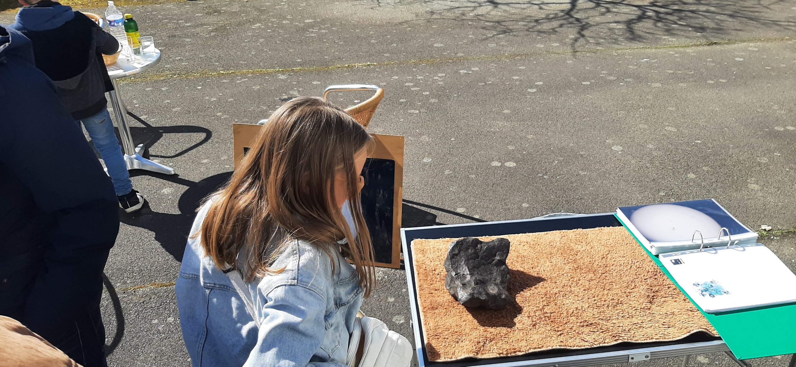 En parallèle de l’observation de l’éclipse, Gérard, expert en météorites, a présenté sa collection de spécimens aux visiteurs, enrichissant l’événement d’une dimension pédagogique supplémentaire.
