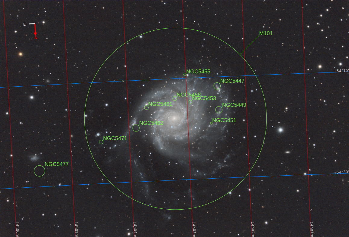 M101, aussi connue sous le nom de Galaxie du Moulinet (ou Pinwheel Galaxy en anglais), est une magnifique galaxie spirale située dans la constellation de la Grande Ourse.