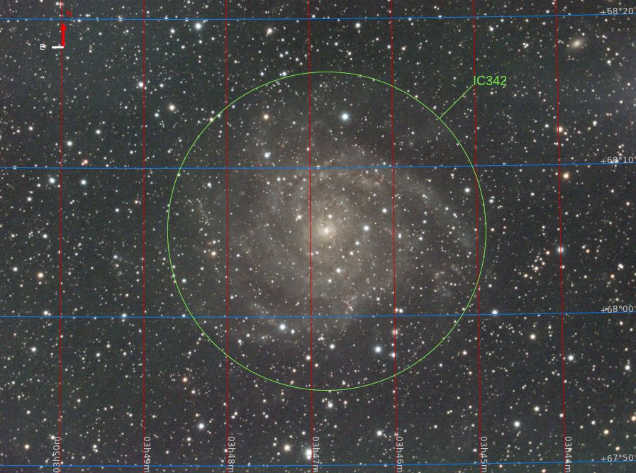 IC 342 porte ce surnom car elle est située près du plan galactique de notre Voie Lactée, ce qui signifie qu’elle est obscurcie par une grande quantité de poussière, de gaz et d’étoiles de notre propre galaxie. Sans cette obstruction, elle serait l’une des galaxies les plus brillantes du ciel nocturne. Cette galaxie spirale est située dans la constellation de la girafe entre 10 et 11 millions d’a.l.
