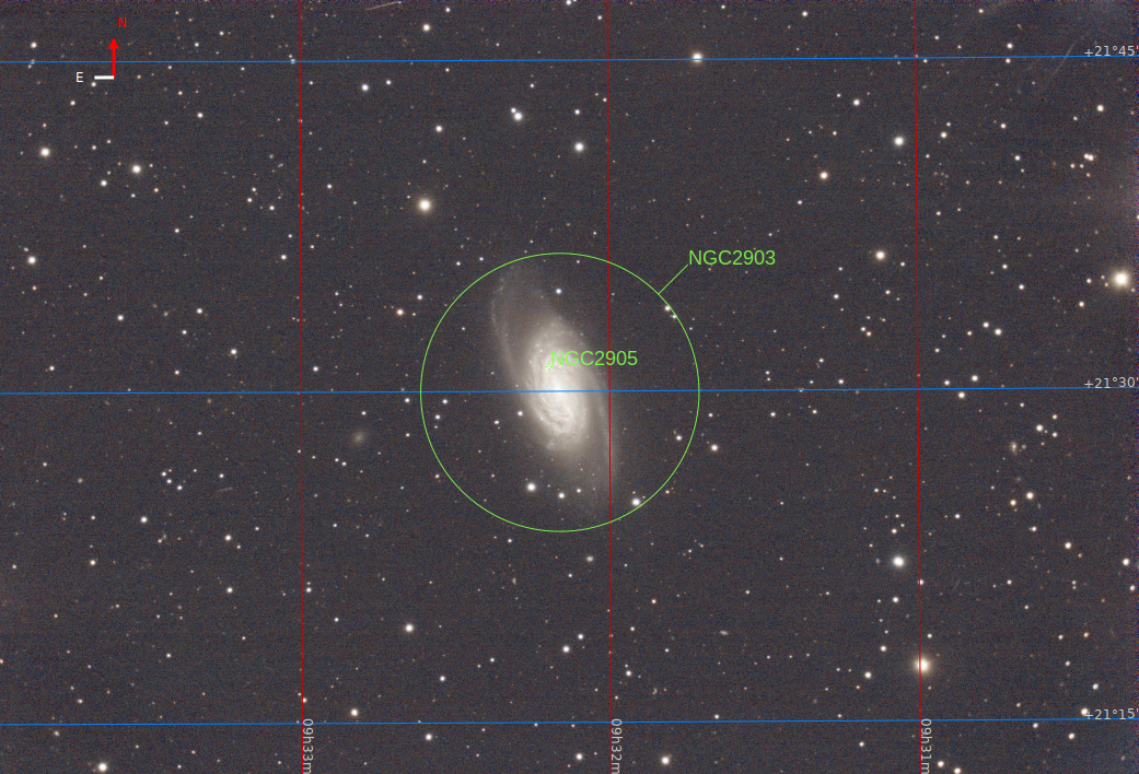 L’observation du 27 décembre, débutée vers 2 heures du matin, s’est déroulée dans des conditions de ciel moyen. À cette période de l’année et à cette heure, la constellation du Lion est bien positionnée dans le ciel, offrant une bonne hauteur au-dessus de l’horizon pour l’observation de NGC 2903.