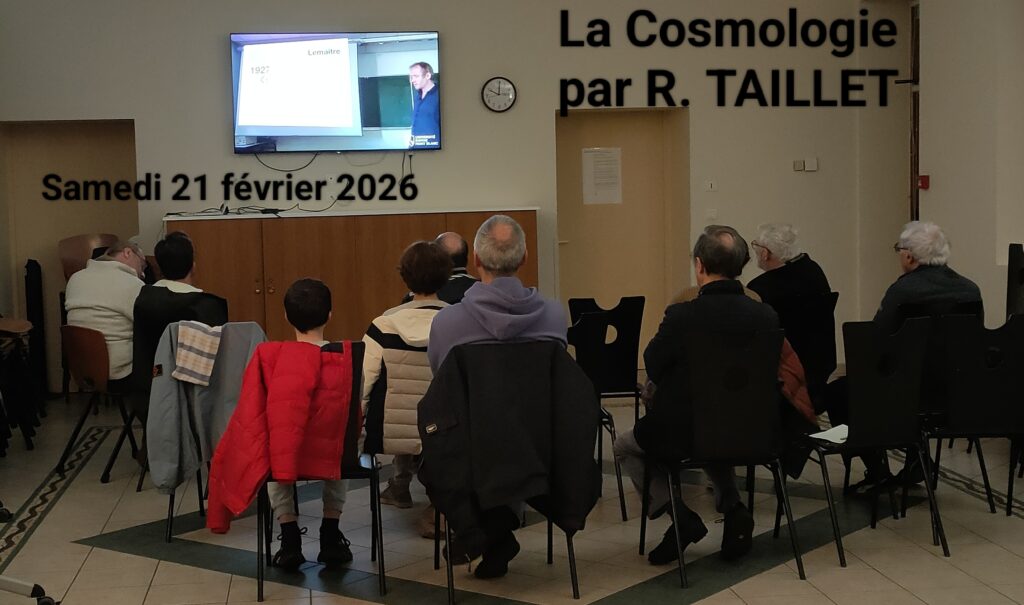 Ce samedi 21 février nous avons poursuivi le déroulé du cours de cosmologie de Richard Taillet.